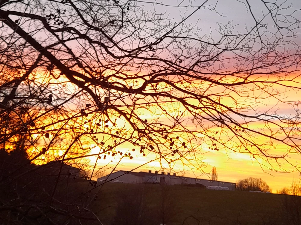 Außenbereich - Sonnenuntergang - Ferienwohnung / Monteurwohnung in Grimma. Beschreibung Außenbereich::: Sonnenuntergang über Döben.