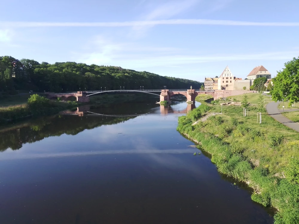 Umgebung - Grimma - Ferienwohnung / Monteurwohnung in Grimma. Beschreibung Umgebung::: Die Pöppelmannbrücke über die Mulde mit Schloß.
